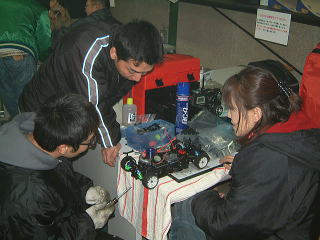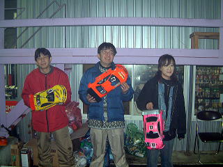 スポーツマンクラスは、増田選手が他を寄せ付けない走りで優勝。2位にはレースの手伝いに来てくれた島崎選手がレンタカー(1速)で急遽参加し、さすがの走りで2位でしたが、エキスパートドライバーなので賞店外となった。木元選手は途中トラブルもあったが着実に周回を重ね2位、予選トップの小熊選手はいい位置につけていたが、スイングシャフトが脱落してしまい無念のリタイヤとなってしまった。続くフレッシュマンクラスは、序盤菅崎選手がトップを走行していたが、7分過ぎに日頃から熱心に練習している畑選手がかわしトップでフィニッシュ!接戦をものにした。菅崎選手はライバルに僅差で負け影で泣いていた(笑)。3位には初レースとは思えない安定した走りで須藤選手が入賞。参加全選手完走しレースの楽しさを満喫していたようだった。注目のイルカマスターは、完走すればなんとかなると豪語していたが、全員見事完走しどうにもならなっかたようだ。 |