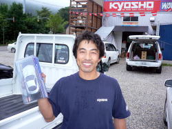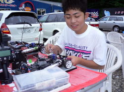 マイスターCUP第4戦が8月20日に行われた。朝方から小雨が降っていたが、レース開始2時間前から沢山の選手が調整に訪れ朝から賑わいをみせていた。予選はベストラップ方式で2ラウンド行い札幌から参戦の石川選手がただ一人19秒台を叩き出しTQを獲得。決勝Bメインは3番グリッドの新藤選手が好スタートをみせトップに立つ。1番グリッドの福田選手は予選でタイヤがかなり消耗してしまい8分過ぎ、遂にタイヤがバーストしてしまい惜しくもリタイアとなってしまった。レース後半、混戦に巻き込まれ最後尾からのスタートだった中村選手が追い上げるが新藤選手が何とか逃げ切った。3位には堅実な走りで増田選手が入賞。続いて行なわれたAメインは、予選で好調の石川選手が他を圧倒する走りで見事第3戦に続き優勝した。序盤、石川選手にくらいついていた畠山選手はメカトラブルにより惜しくもリタイア。レース終了後には豪華景品を抽選で参加選手に配った。
