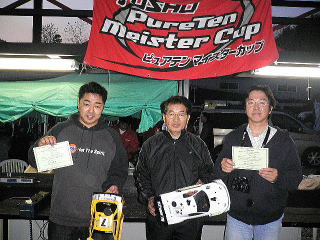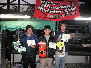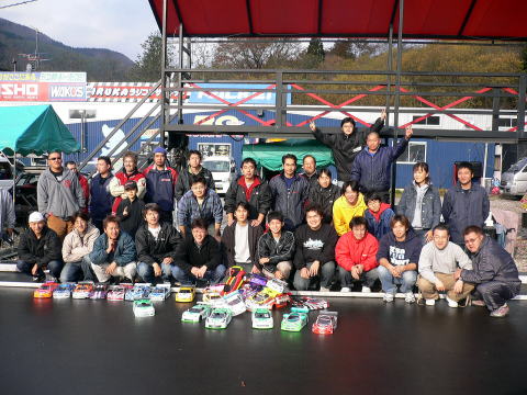 11月5日(日)に京商ワークスドライバー足立伸之介選手参戦のもと23T電動レースshinnosukeチャレンジCUP&マイスターCUP最終戦が行なわれた。9時レース開始を予定していたが前日の夕方に降った雨がなかなか乾かず、2時間遅れの11時より電動レースが開始された。予選は3分間の周回レース2ラウンド行い、決勝は各メイン3ラウンド行いベストラウンドで順位決定。全日本トップクラスの足立選手がどのような走りをするのか注目を集めた。予選2ラウンド行い、足立選手が前日の飲みすぎを感じさせない走りで15L3分14秒を叩き出しトップ通過。2,3,4番手には僅差で帯広から参戦の小山選手、石川選手、畠山選手が続く。決勝1ラウンド目はスタートから抜け出した足立選手が危なげない走りでトップゴール。続く2ラウンド目も足立選手がレースをリードし畠山選手が足立選手の背後をぴったりマークし、一時は抜き去るが後半ミスをしてしまい足立選手が2ラウンド目も連取。運命の3ラウンド目、1番グリッドの足立選手がまさかのミスで4番手からの追い上げとなる。トップに出たのは小山選手、その後畠山選手、石川選手、足立選手と続く。スタートに失敗した足立選手だったが、ここからすばらしい走りを見せ、3分過ぎには2番手まで浮上。残り1分、トップを走行する小山選手が足立選手のプレッシャーに負けたのか僅かなミスをおかし足立選手がその隙にトップに立ちそのままゴール。結局、3ラウンド全てにおいてすばらしい走りを見せてくれた足立選手が優勝。2位には帯広から参戦してくれた小山選手、3位に畠山選手が入賞した。続いて行なわれたマイスターCUPは予選5分間のベストラップ方式で行なわれ、ここでも足立選手が貫禄の走りで19秒32秒のコースレコードを叩き出し予選トップ通過。他の選手で唯一19秒台に乗せた畠山選手が2番手通過。決勝は12台一斉スタートで迫力のあるスタート。足立選手がレースをリードし、畠山・石川・奈良選手が追う展開。序盤から速いペースで走行する足立選手に何とかついていっていた畠山選手だったが14分過ぎには7秒差まではなされ、このまま足立選手の独走態勢に誰もがなるだろうと思われた14分過ぎ、トップを走行する足立選手が他車と接触するという不運に見舞われリタイアとなってしまった。結局、終始安定した走りで畠山選手が優勝、2位には石川選手、3位に奈良選手が入賞した。リタイアとなってしまったがマイスタークラスでも足立選手はさすがの走りを見せてくれた。マイスター総合優勝は畠山選手、またしても2位には島崎選手が入賞した。レース終了後には表彰式・おたのしみ抽選会・足立選手のサイン入り私物(バッテリー他)が抽選で当たり大いに盛り上がった。