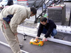 GPツーリング屋外最終戦が11月19日(日)に行なわれた。前日に降った雨が乾かず開催が危ぶまれたが、午後1時レース開始。予選は、5分間のベストラップ2ラウンド行い、19秒393をマークした石川選手がTQ獲得、続いて奈良選手、小川選手が19秒台にのせた。決勝はBメイン15分で行い、ポールグリッドの増田選手は他の選手より速いペースで周回し序盤で2番手を周回遅れにした。見ごたえがあったのは2・3番手争いで唯一4サイクルエンジンで参戦の木元選手と、亀田谷選手がテール・トゥー・ノーズの激しいバトルを10週近く続いたが、亀田谷選手がマシントラブルによりリタイアとなってしまった。結局終始安定した走りを見せた増田選手が優勝、2位は木元選手、3位には須藤選手が入賞。続くAメイン決勝は20分で行い、TQの石川選手が一歩抜け出すがスタート直後は混戦状態。予選3番手タイムを出した小川選手は速いペースで走行するが、マシントラブルでリタイア。10分過ぎ3番手を走行していた島崎選手のエンジンからホームストレートで異音!島崎選手は屋外最終戦に相応しい幕切れだった。トップ争いは石川・奈良選手に絞られたが、奈良選手の追い上げを振り切った石川選手が優勝した。3位には終始安定した走りをした岡島選手が入賞した。