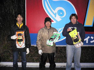 Aメイン上位3名左から3位岡島選手、優勝石川選手、2位奈良選手