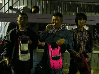 | 5月20日にイルカでは初のタミヤチャレンジカップが開催された。11月までに7戦行ない、5戦の合計ポイントでシリーズ順位を決定する。クラスはGTジャパン06クラスを行った。今回はキット欠品中ということで開催できなかったミニクラスも第2戦(6月25日)から開催される。レース当日はエントリー10名でやや少なめにもかかわらず、熱いバトルが繰り広げられた。レース方式は予選なしの、決勝8分間・3ラウンド行ないベストラウンドで順位決定された。レース開始前にはストレートスピードの差を極力失くすため、最近お馴染みとなったバックストレート中間にシケインを設置。1ラウンド目はスタートから抜け出した福田選手が全く危なげない走りでトップゴール。続く2ラウンド目も福田選手が好スタートし、奈良選手、吉田選手が追う展開。後半徐々にペースを上げ1秒差まで追いついた奈良選手だったが、他車と接触してしまい結局1ラウンド同様福田選手がトップゴール。いつものレース方式だと、この時点で福田選手の優勝が決定するが今回からベストラウンドになったので最後まで順位がわからない。そして運命の3ラウンド目、スタート後抜け出したのは、ホームコースが八郎沼駐車場でストリートラジコンでは無敗(自称)の荒川選手。2ラウンド目も開始直後(1分位)はトップだったが、最終ラウンドはレース中盤までリードする。しかしジワジワ追いついてきた吉田選手がかわしトップに立ちそのままゴール。集計の結果、3回目に39L、8分00秒400の吉田選手が優勝、2位は39L、8分00秒660の福田選手でなんとその差はコンマ2秒だった。3位にはなんとなんと優勝タイムからわずか2秒差で荒川選手が入賞した。 | |||||||||||||||||||||||||||||||||||||||||||||||||||||||||||||||||||||||||||||||||||||||||||||||||||||||||||||||||||||||||||||||||||